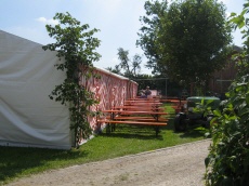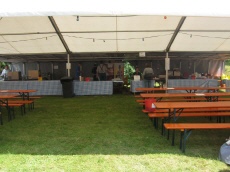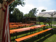 Blick auf Schißstand und Aussenbestuhlung -