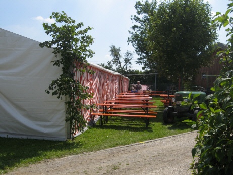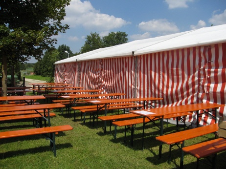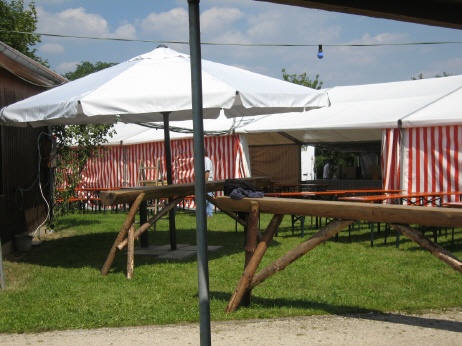 Blick auf Schißstand und Aussenbestuhlung