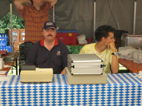 Udo Schäfer und Christoffer Klaus an der Kasse
