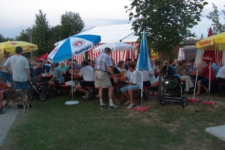 Besucher beim Sommerfest 2012 Im Zelt oder außerhalb, man konnte sich einen beliebten Platz aussuchen