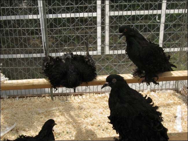Schwarze Lockentauben bei underer Werbeschau |