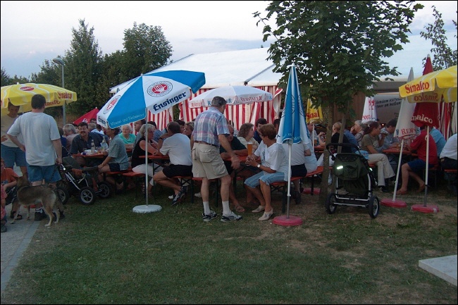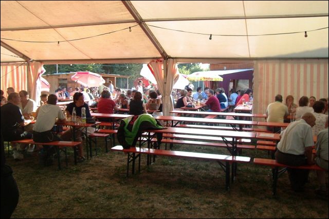 Besucher beim Sommerfest 2012 Im Zelt oder außerhalb, man konnte sich einen beliebten Platz aussuchen |
