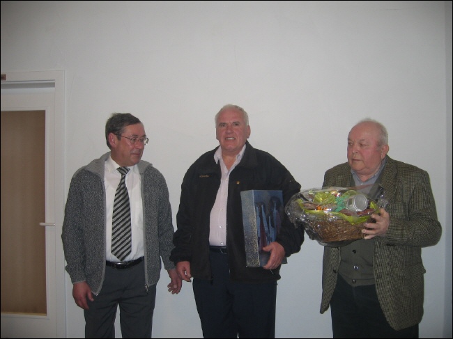 Ehrung zum Altmeister Kreisvorsitzender Manfred Riek (re.) und Hermann Geiger (li) gratulierten Günter Kleinert (Mitte) zu seiner Ernennung zum Altmeister der Kaninchenzucht |