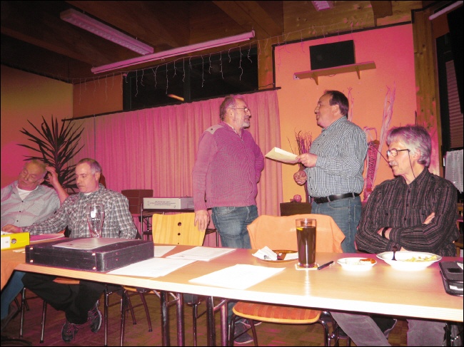 Aufgrund von Umbauarbeiten im Vereinsheim fand unsere Jahreshauptversammlung in den Hexenbanner-Stuben statt. Vorsitzender Rolf Stoll konnte viele Mitglieder besuchen und arbeitete zügig die Tagesordnung ab. Einen besonderen Tagesordnungspunkt stellten die Ehrungen dar. So konnten Doris Vogt (für 25 Jahre), Helmut Jenz, Fritz Renz und Dieter Stoll (für 40 Jahre), Gerhard Bauer (für 50 Jahre) sowie Erwin Stoll und Karl Keuerleber (für 70 Jahre) ausgezeichnet werden.