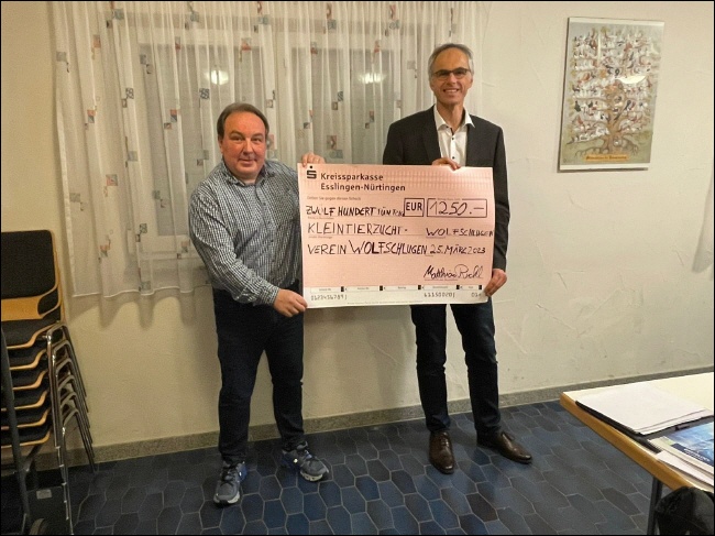Zum 125 jährigen Jubiläum überreichte Bürgermeister Ruckh einen Scheck im Wert von 1250.-€ von der Gemeinde Wolfschlugen |