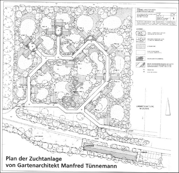 Der Antrag auf eine Gemeinschaftszuchtanlage wurde im Verein 1986 beschlossen und bei der Gemeinde am 5.3.1987 zur Genehmigung vorgelegt. Verschiedene Standorte und Ausbauarten wurden diskutiert, manche waren von der Lage her nicht durchführbar (z.B. gaben die Grundstücksbesitzer die Grundstücke nicht frei. An anderer Stelle ging es vom Landschaftsschutz nicht). So vergingen Jahre, bis man sich für diesen Standort und diese Ausbauart einigte. Nach einigen Veränderungen und Auflagen ( Auflagen waren z.B. die größe der Häuschen, die Bepflanzung, der Schutzwall, die Wegeart, die Umzäunung sowie die Voliere der einzelnen Parzellen) erfolgte schließlich am 20.03.1993 durch Bürgermeister Otmar Emhardt, dem Landschaftsarchitekten Manfred Tünemann, dem Vorstand Hermann Geiger sowie den Ausschussmitgliedern des Vereines der erste Spatenstich. So begann nun ein sehr zeitaufwendiger und kostspieliger Auf-und-Ausbau.