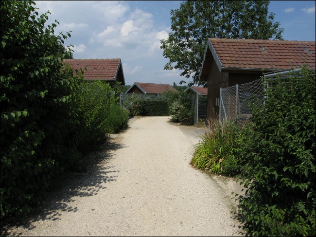 Die Häuschen wurden von der Zimmerei Kleinert vorgezimmert und von den Mitgliedern aufgestellt und ausgebaut. Die Häuschen sind im Besitz des Vereines und jeder Züchter zahlt eine jährliche Miete. Den Ausbau musste jeder Züchter selbst durchführen und bezahlen. Der Ausbau einer einzelnen Parzelle kostete jeden Züchter extra zwischen 4000.-DM und 8000.-DM. Die Dachziegel z.B. besorgten die Mitglieder selbst. Wenn irgendwo ein intaktes Dach abgedeckt wurde, deckte es der Verein ab und deckten die Häuschen damit. Das Regenwasser der Dachrinnen wurde zum See geleitet, so wird das Wasser im See immer erneuert. Einige Parzellen liegen jedoch zu tief, so dass eine Einleitung in den See nicht möglich war. Dort wurden unterirdische Wasserbehälter aufgebaut, in denen das Wasser aufgefangen wird. Die beide Seen und das Gemeinschaftshäuschen haben einen Anschluss an in den örtlichen Abwasserkanal. Die runden Kamine aus Kupfer die aus den Dächern ragen sind keine Heizkamine, sondern Lüftungskanäle.